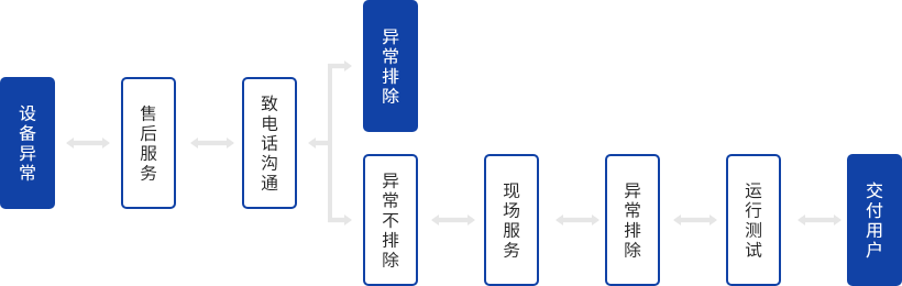 技術支持服務中心和相關技術支持服務人員聯(lián)合提供每周7天,每天24小時電話技術咨詢服務。維修、保養(yǎng)維護、維修人員將在4小時內(nèi)達到現(xiàn)場處置,12小時內(nèi)維修完成。